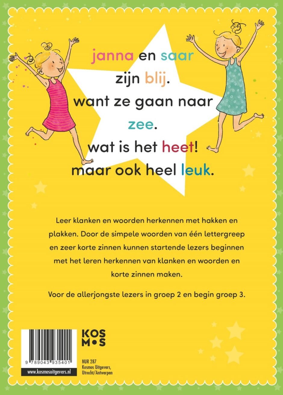 In ieder boek beleven de Zoete Zusjes Saar en Janna weer allerlei avonturen. En nu kunnen ook de jongste lezers daarvan meegenieten! Met in totaal maar liefst 144 bladzijden leesplezier zullen kinderen in groep 2 en 3 kunnen beginnen met het herkennen en lezen van de eerste letters, woordjes en zinnen. Eerst samen, en dan zelf! Natuurlijk zijn de verhalen weer opgevrolijkt met de leukste illustraties van Iris Boter.