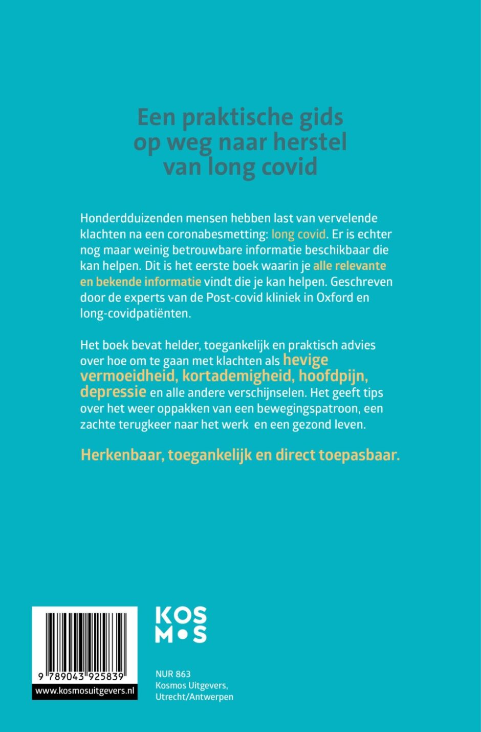 De 'Long covid zelfhulpgids' is het eerste Nederlandstalige boek dat voor jou alle beschikbare en betrouwbare informatie over long covid bundelt. Dit boek is geschreven door de experts van de post-covidkliniek in Oxford én long covid-patiënten. Het bevat praktisch advies over hoe om te gaan met klachten als vermoeidheid, kortademigheid, hoofdpijn of zelfs depressie.