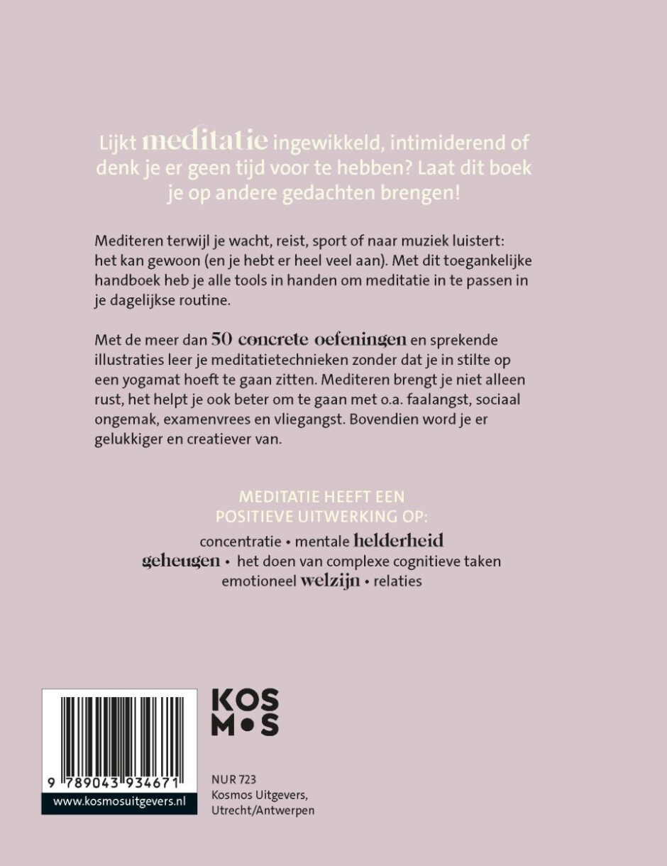 De meer dan 50 concrete oefeningen maken het je makkelijk om te mediteren tijdens alledaagse momenten, zoals wachten, reizen of muziek luisteren. Hierdoor oefen je meer aandacht en rust te hebben en dit kan weer een meerwaarde hebben voor allerlei kleinere en grotere problemen in je leven.