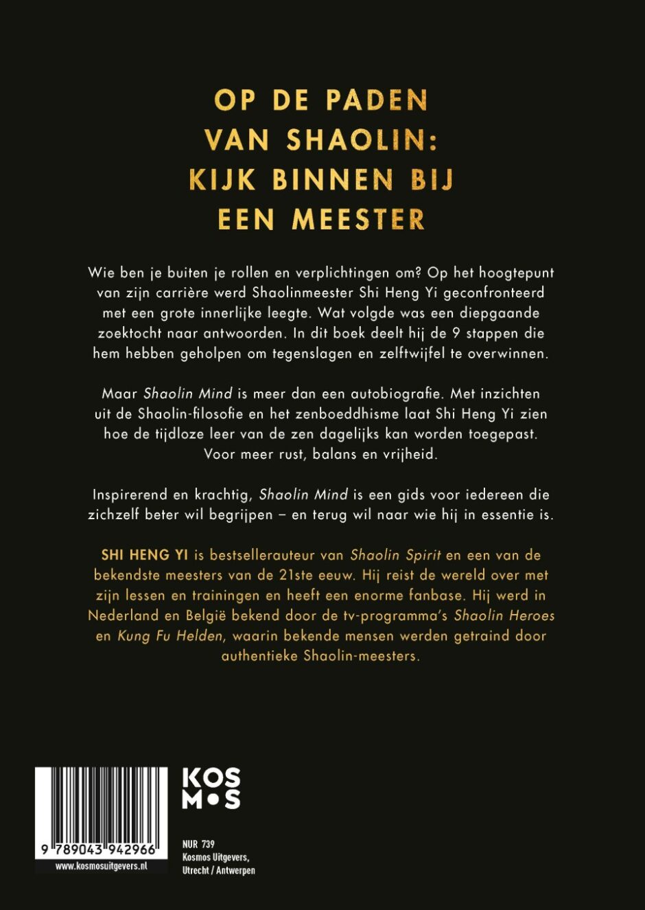 Shi Heng Yi onthult de negen stappen die hem hielpen om crisis om te zetten in kracht, twijfel in vertrouwen en leegte in vervulling. Met de tijdloze wijsheid van de Shaolin-filosofie en het zenboeddhisme laat hij zien hoe ook jij veerkrachtiger kunt worden en vrede kunt vinden te midden van verandering.