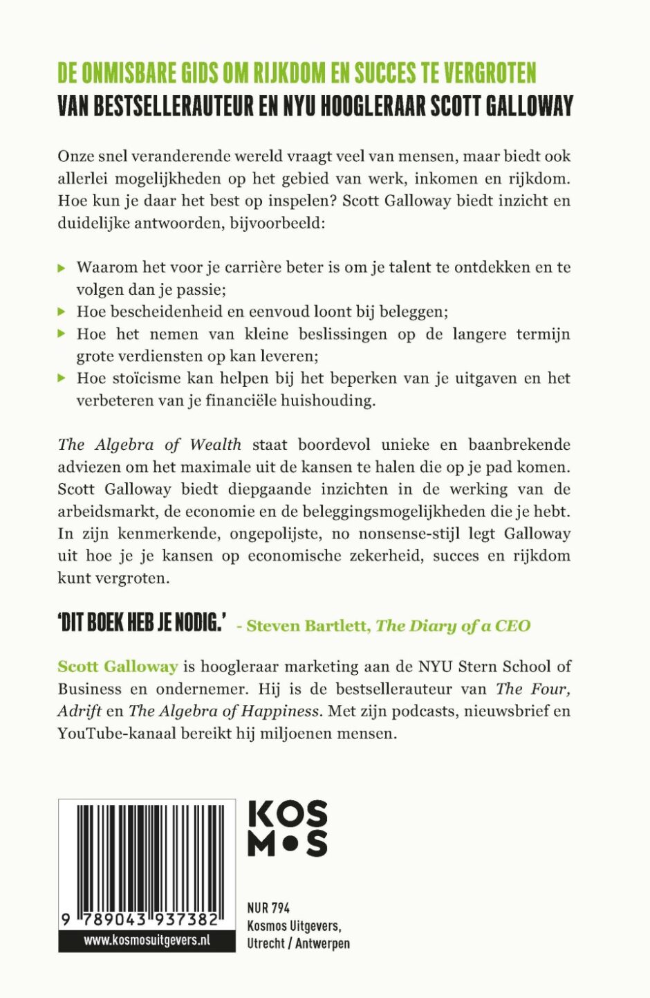 The Algebra of Wealth van hoogleraar Scott Galloway is een praktische en onmisbare gids voor meer welvaart, succes en geluk. In zijn ongepolijste no-nonsense stijl laat Galloway zien hoe je